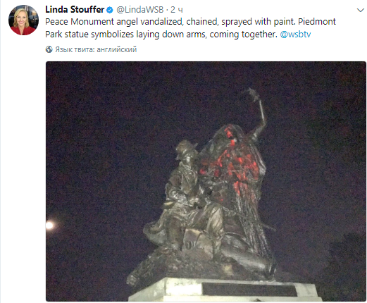 Протестующие против насилия в американском Шарлоттсвилле осквернили монумент в честь окончания Гражданской войны в парке Атланты. Об этом сообщает издание Atlanta Journal-Constitution.