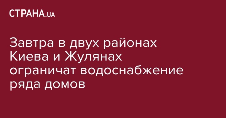 Завтра в двух районах Киева и Жулянах ограничат водоснабжение ряда домов