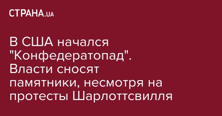 Жители США сообщают о начале своеобразного "Конфедератопада". После насильственных событий в Шарлоттсвилле, где была убита девушка, в США развернулись масштабные акции по свержению статуи эпохи Конфедерации.