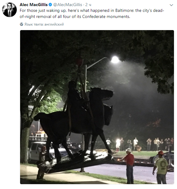Американские власти убрали памятники Конфедерации в Балтиморе на фоне событий, которые происходили в Шарлоттсвилле. Об этом сообщает The Guardian.