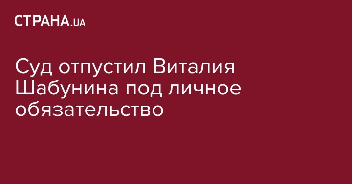 Судья Днепровского райсуда Киева Курило Андрей принял решение отпустить под личное обязательство председателя "Центра противодействия коррупции" Виталия Шабунина, которого обвиняют в избиении Всеволода Филимоненко. Об этом сообщает корреспондент "Страны".
