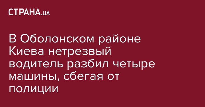 Утром 17 августа нетрезвый водитель, убегая от полиции в Киеве, разбил четыре автомобиля. Инцидент произошел в Оболонском районе столицы. Об этом пишет dtp.kiev.ua в Facebook.