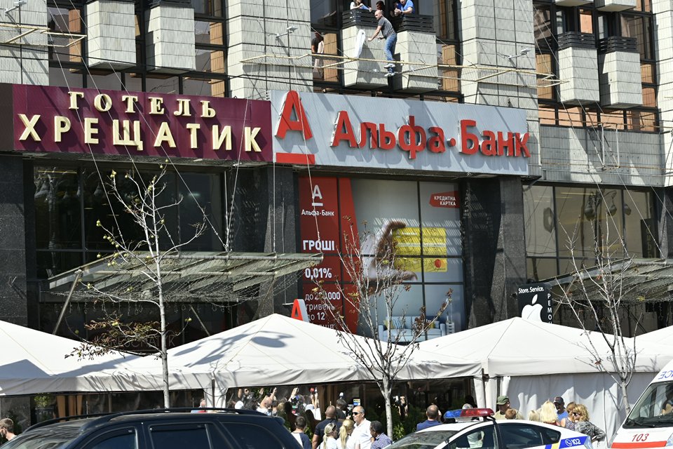 Неизвестный мужчина угрожает прыгнуть вниз в центре Киева. Фото - Страна.UA