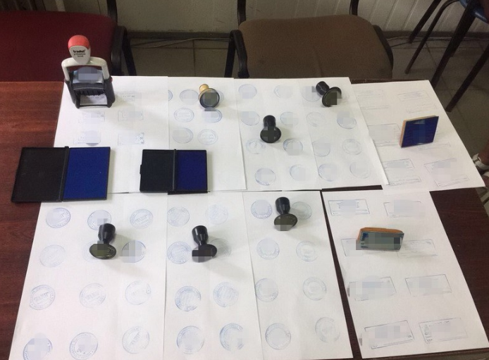 Во время обысков правоохранители изъяли кассовый штамп одного из банковских учреждений, печати юридических и физических лиц, штампы миграционной службы, компьютерную технику, бланки приглашений с одной из стран Европы для предоставления разрешения на трудоустройство за рубежом.