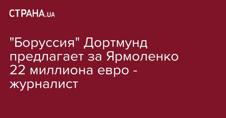 "Боруссия" (Дортмунд) предлагает 22 млн евро за Ярмоленко из "Динамо", - написал Гюндогар.