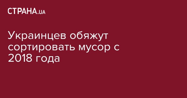 С 1 января 2018 года украинцев обяжут сортировать мусор в соответствии с нормой закона "Об отходах". Об этом сообщает ТСН.