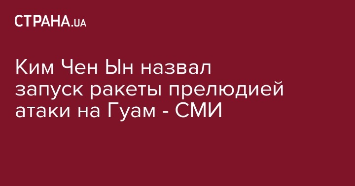 Лидер КНДР Ким Чен Ын заявил, что последний запуск баллистической ракеты, которая пролетела над японским островом Хоккайдо, является "важной прелюдией" в сдерживании американского Гуама. Об этом сообщает ТСН со ссылкой на Центральное телеграфное агентство Кореи.