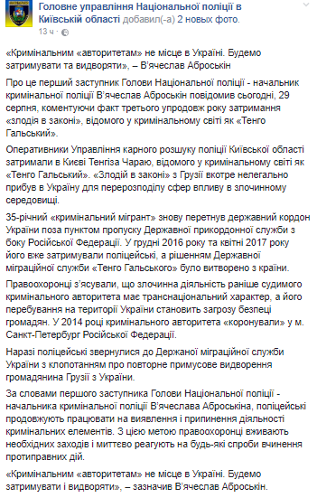 "Задержанный в очередной раз нелегально прибыл в Украину из Грузии для перераспределения сфер влияния в криминальном мире.