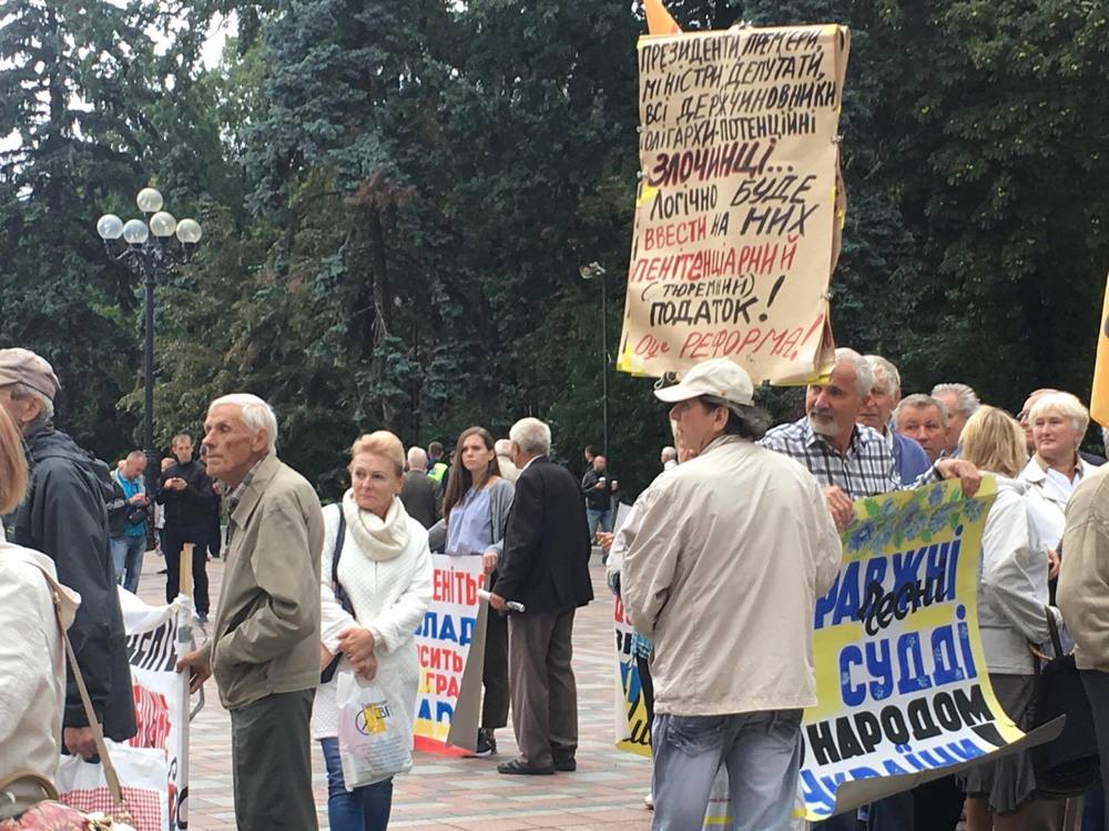 Кроме того, на площадке перед Радой митингуют около полсотни чернобыльцев.