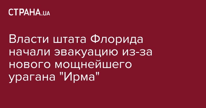 Как сообщала "Страна", МИД Украины предупредил сограждан о новом урагане Ирма во Флориде и Пуэрто-Рико
