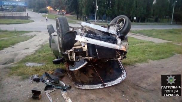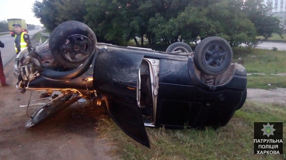 В Харькове Land Rover устроил ДТП и перевернулся на крышу