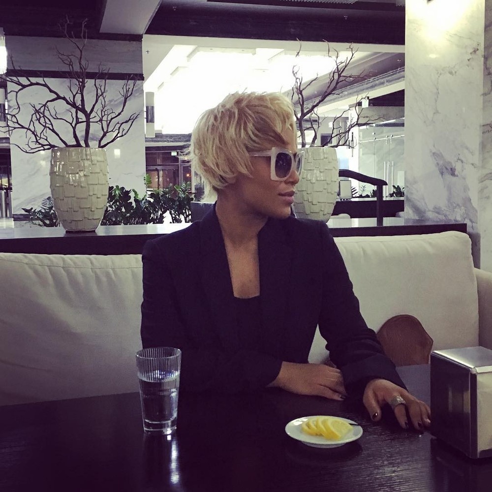 Певица сделала короткую стрижку и предстала платиновой блондинкой.