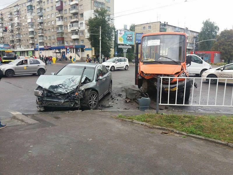 В среду, 6 сентября, Во Львове на перекрестке улиц Любинская и Петлюры, возле заправки ОККО, произошло ДТП с участием маршрутки №33 и автомобиля Honda Accord, в результате которой пострадали шесть пассажиров маршрутки.