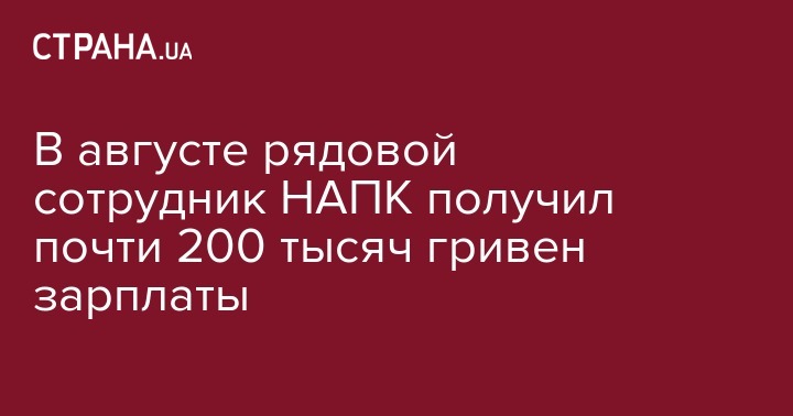 В августе рядовой сотрудник НАПК получил почти 200 тысяч гривен зарплаты