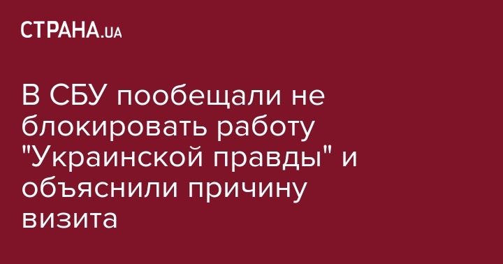 Служба безопасности Украины не намерена препятствовать деятельности интернет-издание "Украинская правда" и его журналистов. Об этом сообщила спикер СБУ Елена Гитлянская.