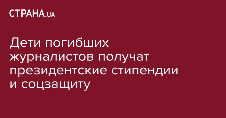 Согласно указу в Украине будут созданы дополнительные правовые основания для назначения стипендий президента Украины детям журналистов, которые во время выполнения профессиональных обязанностей погибли или умерли, в том числе в районе проведения АТО. "Глава государства поручил Кабинету министров подготовить и подать в установленном порядке на рассмотрение Верховной Рады законопроект о внесении изменений в закон Украины "Об оздоровлении и отдыхе детей" относительно признания детей журналистов, которые погибли или которым установлена инвалидность I группы в связи с выполнением профессиональных обязанностей, детьми, которые требуют особого социального внимания и поддержки", - уточнили в пресс-службе президента.