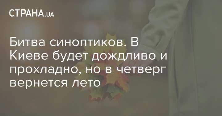 "Страна" продолжает проект "Битва синоптиков" очередным прогнозом погоды на неделю в Киеве. Мы собрали данные с 18 по 25 сентября от пяти ведущих метеосайтов страны. В конце недели мы сравним прогнозы с тем, что происходило на самом деле, чтобы назвать самый точный и самый недостоверный из них.