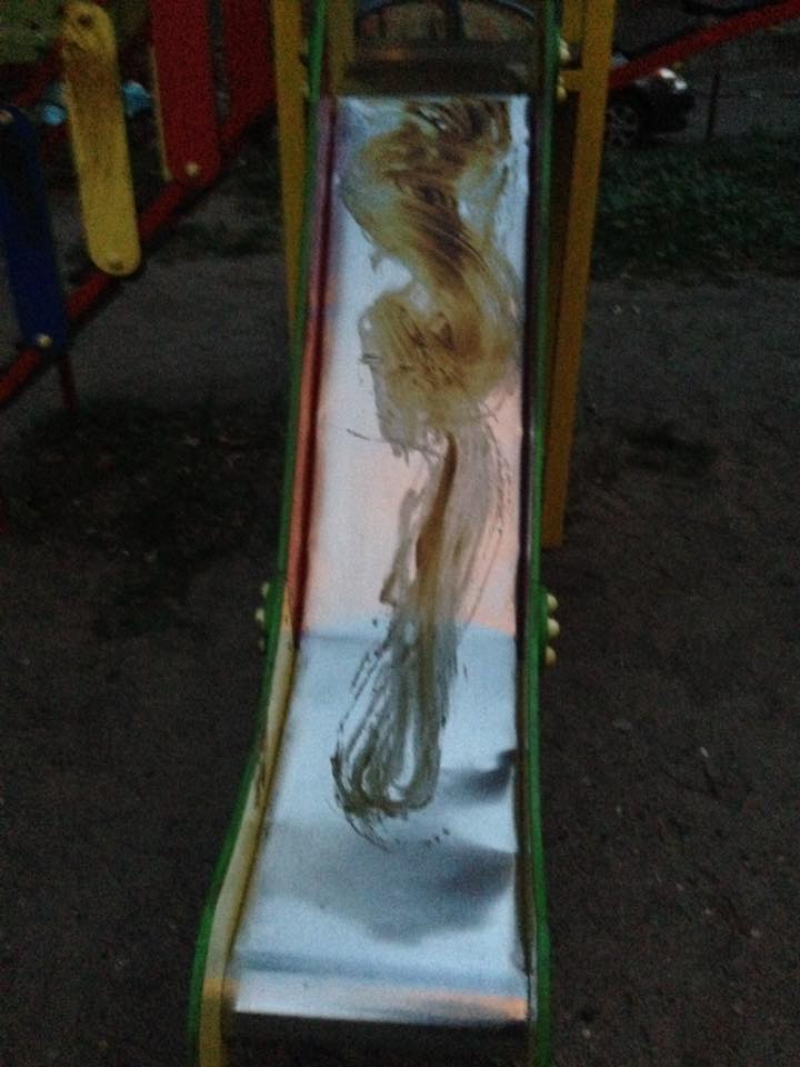 Он говорит, что это не на шутку возмутило киевлян. На детской игровой площадке солидолом измазали качели, горку, лесенку и т.д.