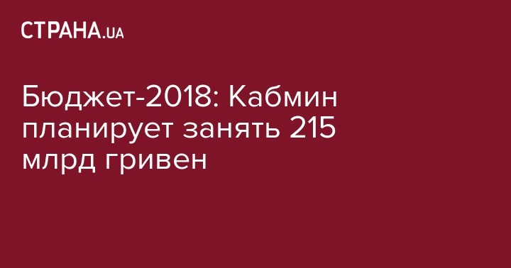 Кабинет министров Украины в 2018 году планирует госзаймы в рамках финансирования общего фонда государственного бюджета в объеме 214,961 млрд грн, в том числе внешние – 91,2 млрд грн.