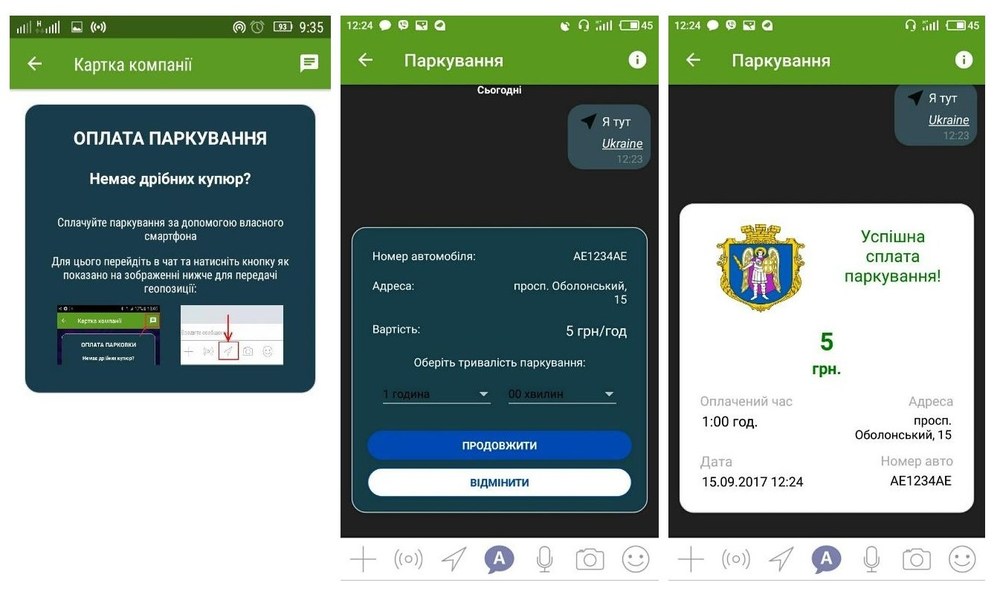 Клиенты ПриватБанка могут оплатить через Privat24 парковку на площадках коммунального предприятия "Киевтранспарксервис". В отличие от аналогов, где нужно регистрироваться и пополнять заранее личный счет, с Privat24 этого делать не придется. Все, что нужно для этого сделать, – найти в мессенджере Privat24 компанию "Парковка", определить геопозицию, указать номер авто и выбрать срок парковки. После определения платежной карты, с которой будет произведена оплата, остается получить подтверждение оплаты.