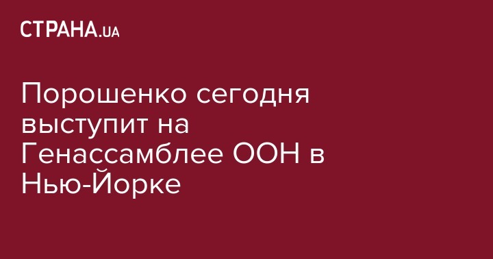 В среду, 20 сентября, Петр Порошенко выступит с речью на дебатах Генассамблеи ООН в Нью-Йорке, а также примет участие в саммите Совбеза ООН. Об этом сообщает пресс-секретарь президента Святослав Цеголко в Facebook.
