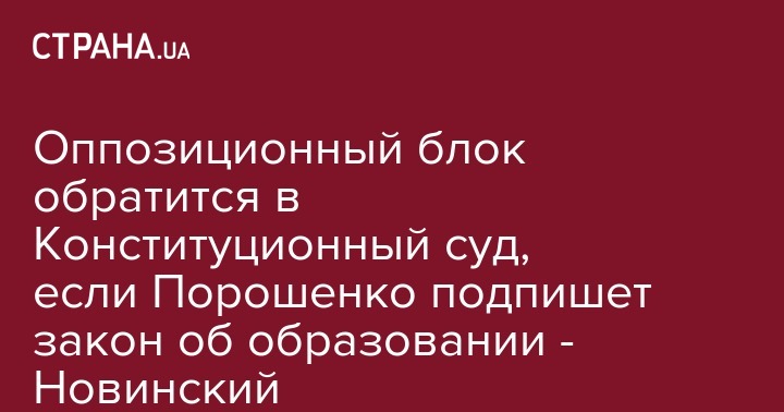 Новинский призвал Порошенко ветировать закон об образовании Об этом народный депутат от "Оппозиционного блока" Вадим Новинский заявил в эфире телеканала "NewsOne" в среду, 20 сентября.