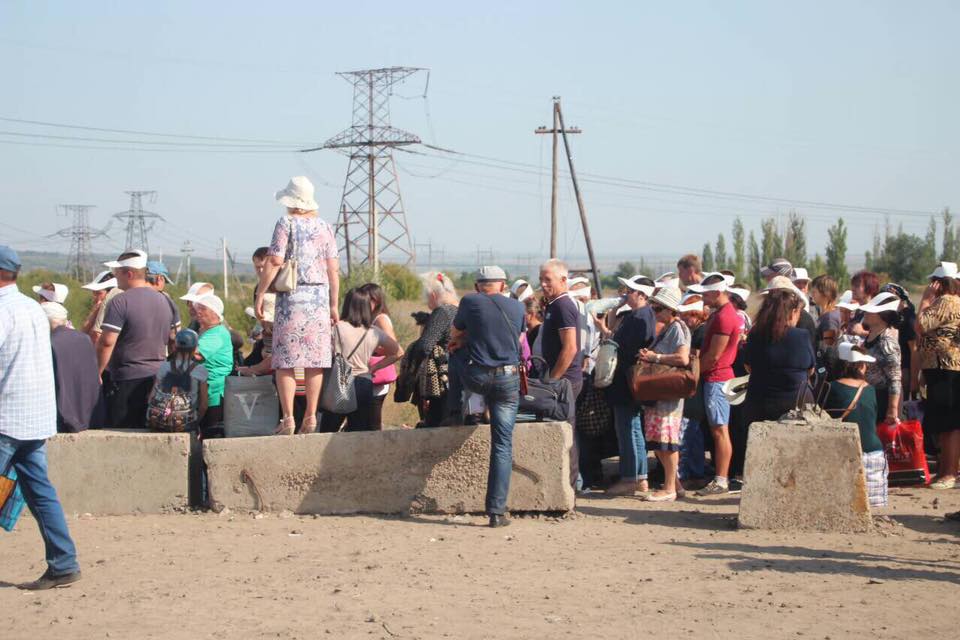 "Любите Украину - призывает плакат на кпп "Майорск", а вокруг - грязь, пыль, часовые очереди, сотни людей с детьми в наспех сбитом деревяно-целлофановом ангаре-накопителе, где температура под 35", - написал Луценко на своей странице в Facebook.