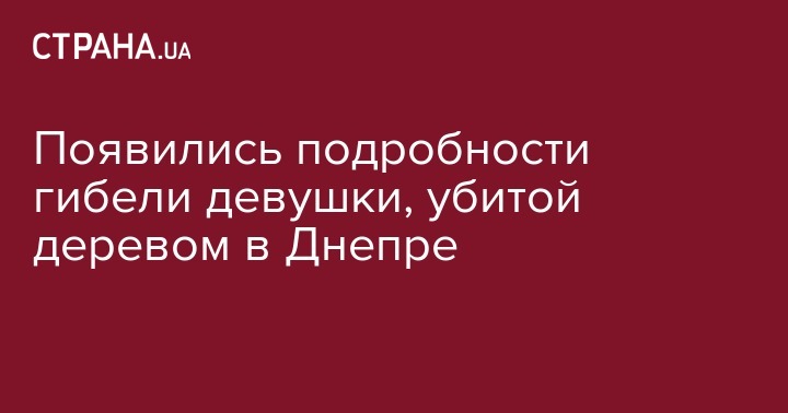 Появились подробности трагической смерти 21-летней девушки, которая погибла под обрушенным деревом в Днепре. Ветка сухого дерева из-за ветра рухнула на девушку, пострадавшая скончалась от полученных травм. Об этом сообщает "Информатор".