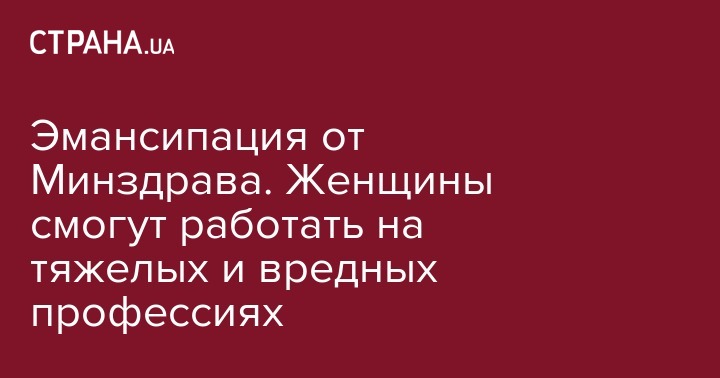 Напомним, в июне Министерство здравоохранения инициировало отмену приказа №256, запрещающего работать женщинам на 450 тяжелых профессиях.