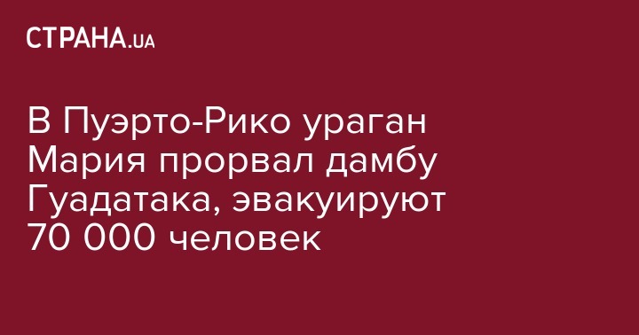 В Пуэрто-Рико ураган Мария прорвал дамбу Гуадатака, эвакуируют 70 000 человек