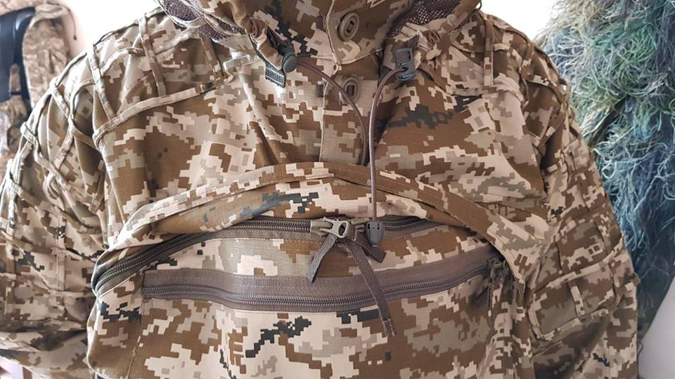 "Свободная конструкция комплекта обеспечивает максимальную свободу движений, скрывает очертания человека, позволяет использовать в качестве верхней одежды, надевать на одежду нижние слои, снаряжение. Почти по всей поверхности комплекта размещена швартовочная сетка, с помощью которой возможно замаскировать себя согласно поставленных задач, местности и погодных условий ", - говорится в сообщении.