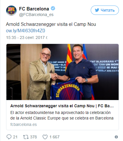 Знаменитый голливудский актер, бывший губернатор штата Калифорния Арнольд Шварценеггер побывал в гостях у "Барселоны" и рассказал, что он думает об игре Лео Месси, передает El Mundo Deportivo.