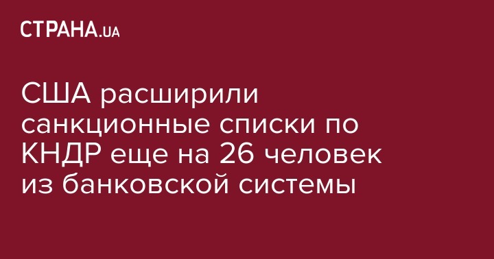 США расширили санкционные списки по КНДР еще на 26 человек из банковской системы