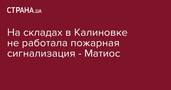 Военный прокурор Украины Анатолий Матиос заявил, что на складах боеприпасов в Калиновке не работала пожарная сигнализация и не хватало 50% технических средств для охраны. Об этом сообщает "Интерфакс Украина".