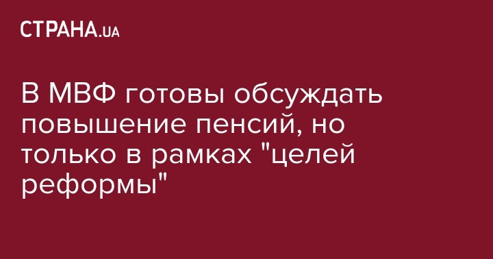 Представители Международного валютного фонда (МВФ) готовы обсуждать с властями Украины изменения в законопроект о пенсионной реформы (№6614) касательно повышения пенсий.