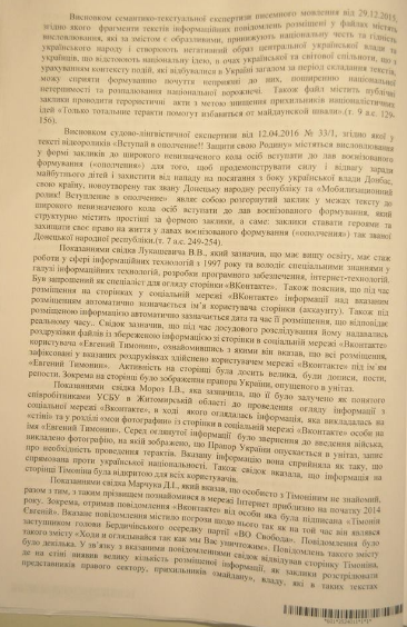 Адвокат Светлана Максимец обнародовала приговор Андрушовского суда по делу журналиста Дмитрия Васильца и оператора Евгения Тимонина. Фото документа она разместила в Facebook.