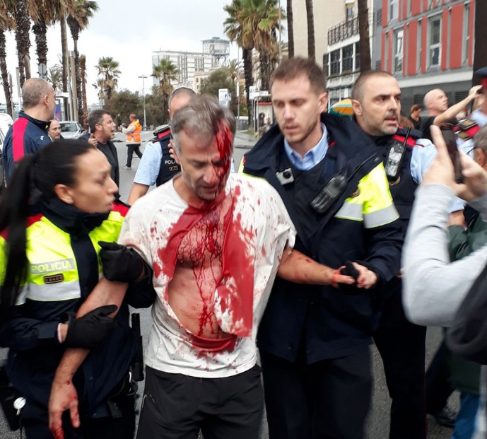 А в соцсетях появились фото пострадавших протестующих от полицейских во время проведения референдума о независимости Каталонии.