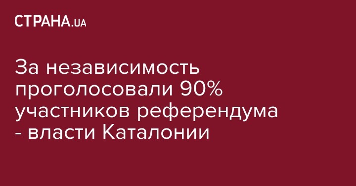 Официальный представитель правительства Каталонии Жорди Турул заявил, что за независимость от Испании высказались 90% участников референдума. Всего в голосовании участвовали 2,3 млн человек. Об этом пишет "Коммерсант".