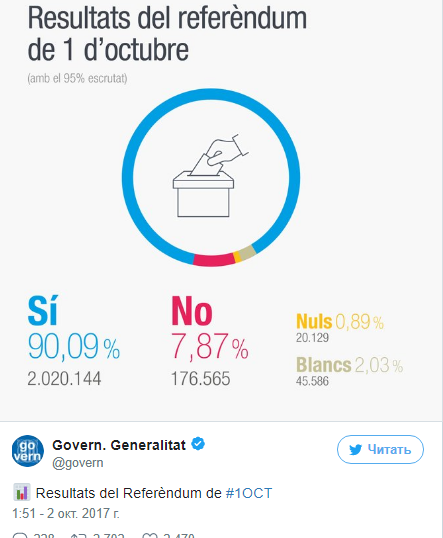 Данные обнародованы в Twitter правительства Каталонии.