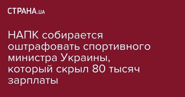 Нацагентство по предупреждению коррупции (НАПК) обратилось в Печерский райсуд Киева с требованием о наложении штрафа на министра молодежи и спорта Игоря Жданова в размере от 850 до 1 700 гривен за скрытие зарплаты в размере 80 000 гривен. Об этом сообщают "Украинские новости" со ссылкой на источник в НАПК.