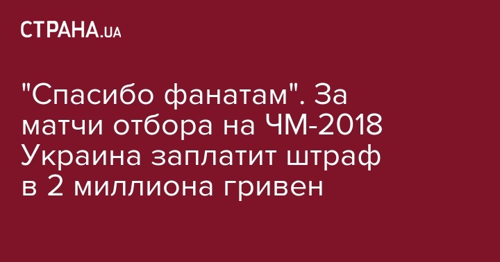 Федерация футбола Украины (ФФУ) из-за поведения болельщиков должна выплатить штрафов за 5 матчей отбора ЧМ-2018 на сумму в 2 124 389 гривен.