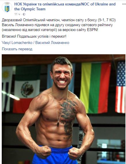 Вторую строчку в рейтинге лучших боксеров мира по версии спортивного канала ESPN занял двукратный Олимпийский чемпион Василий Ломаченко. Об этом сообщает в Facebook пресс-служба Национального олимпийского комитета Украины.