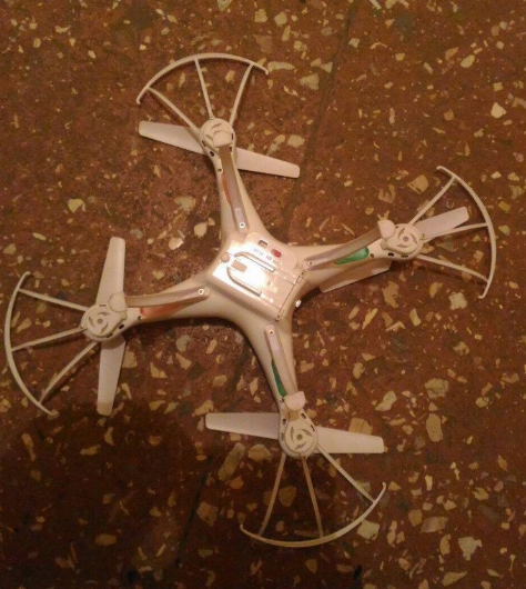 Задержанные дают объяснения правоохранителям относительно цели использования ими квадрокоптера рядом с военной частью.