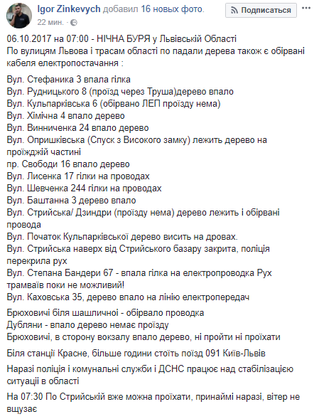 По Львову и области повалено много деревьев. Многие из них повредили припаркованные на улице машины или падали на проезжую часть и жилые дома, также снесло билборды и разные конструкции.
