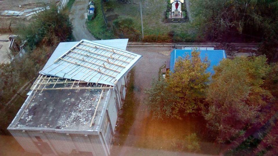 Также оборванные кабеля электроснабжения, а в одном из домов сорвало крышу.