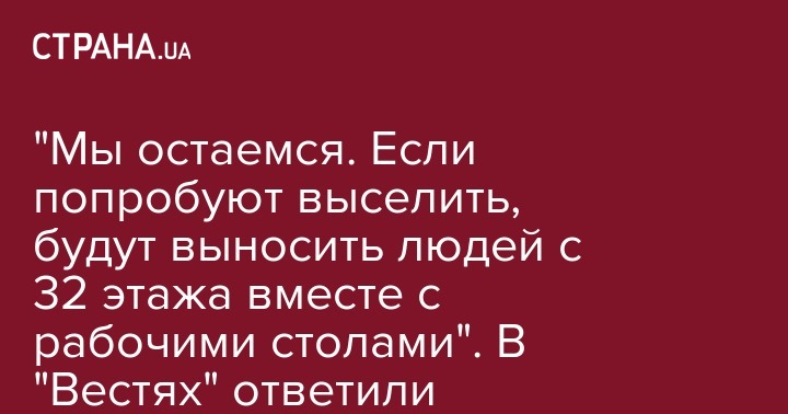 "Только в рамках правовых отношений аренды мы посмотрим на их (Нацагентства - Прим. Ред.) документы, покажем наши и войдём в правовые взаимоотношения. У нас есть наши права, и мы их будет отстаивать. Захотят выселять, будут выносить нас с рабочими столами сами. Но это будет вмешательство в журналисткую деятельность", - подчеркнула глава медиахолдинга.