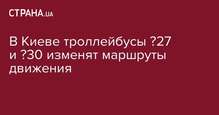 В ночь на 8 октября движение троллейбусов № 27 и 30 будет изменено в связи с проведением капитального ремонта проезжей части по ул. Елены Телиги на участке от ул. Дегтяревской до ул. Дорогожицкой. Об этом сообщает пресс-служба КГГА.