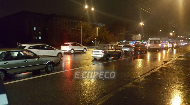 На проспекте Победы в Киеве, в районе Шулявского моста, столкнулись 5 автомобилей
