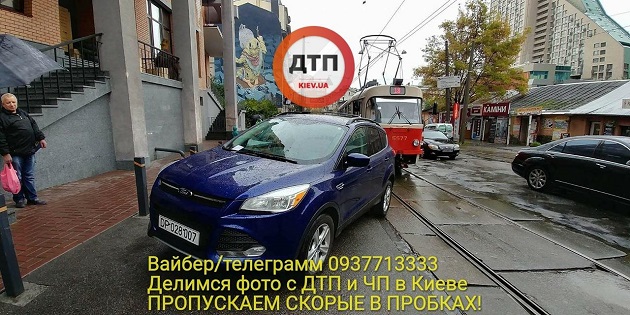 В Киеве автохам с дипломатическими номерами перекрыл трамвайное движение