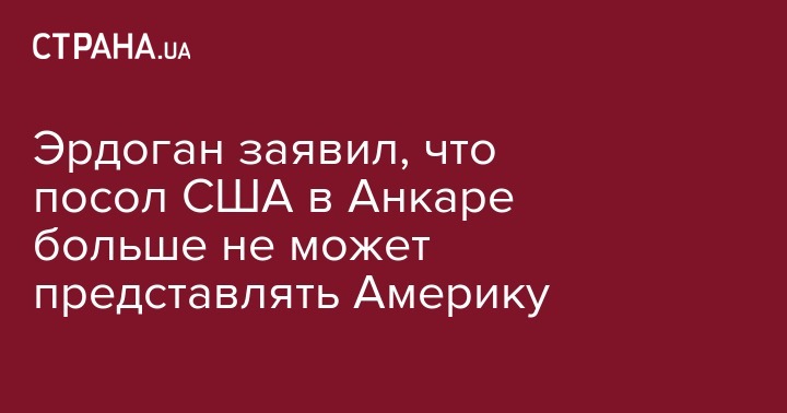 Президент Турции Реджеп Тайип Эрдоган во вторник заявил, что посол США в Анкаре Джон Басс в глазах турецких властей больше не является представителем своей страны в Турции, передает "Интерфакс-Украина".